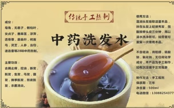 皂角,无患子,侧柏叶,女贞子,墨早莲,浮萍,透骨草,霜桑叶,何首乌,灵芝,人参,当归,迷迭香等28味中药熬制。