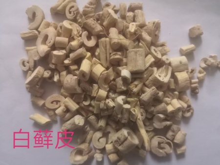 为芸香科植物白鲜Dictamnus dasycarpus Turcz.的干燥根皮。主产于辽宁、河北、四川、江苏等地。春、秋二季采挖根部,除去泥沙及粗皮,剥取根皮,切片,干燥。生用。
