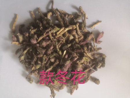 为菊科植物款冬 Tussilago farlara L.的花蕾。主产于河南、甘肃、山西、陕西等地。12月或地冻前当花尚未出土时采挖,除去花梗,阴干,生用,或蜜炙用。