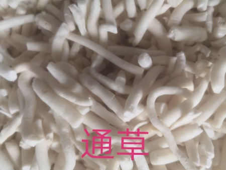 为五加科植物通脱木Tetrapanax papyriferus(Hook.)K.Koch的干燥茎髓。主产于贵州、云南、四川、台湾、广西等地。多为栽培:秋季割取茎。裁成段,趁鲜时取出茎髓,理直,晒干,切片,生用。